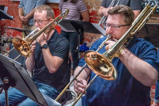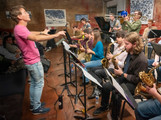 September 16, 2025 - The Heisenberg Uncertainty Players, HUP, performed Director John Dorhauer's adaptation of the entire Pink Floyd 1975 classic, “Wish You Were Here”, celebrating the album’s 50th anniversary epic exploration of prog rock expanse as well as a poignant commentary on loss. Director/Composer John Dorhauer. Saxes: Natalie Lande, Kelley Dorhauer, Sam Pilnick, Matt Zmuda, James Baum. Trumpets: Grace Mulvey, Jon McQuade, Bennett Heinz, Emily Kuhn. Trombones: Michael Nearpass, Josh Torrey, John Wambach, Dan DiCesare. Guitar Chris Parsons, piano: Stu Seale, bass Dan Parker, drums & cymbals Ethan Bouwsma. Visual artist Alex Puryear created original paintings in response to the music.