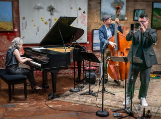 Eric Jacobson - trumpet, Pamela York - piano, and Clay Schaub - bass. Visual artist Alex Puryear created artwork in response to the music.