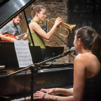 August 23, 2023 - The Emily Kuhn Quintet and Maxi McGathey’s Orchestra each performed their own exciting, challenging original compositions in separate sets at the Fulton Street Collective, FSC, in Chicago. Emily Kuhn trumpet/compositions, Erik Skov guitar, Meghan Stagl piano/vocals, Kitt Lyles bass, and Gustavo Cortiñas drums & cymbals. McGathey’s Orchestra included Maxx McGathey piano/composition, Scott Hoecker trumpet, Wills McKenna flute, Meghan Stagl flute/keyboards, Sam Genualdi guitar, Justin Peterson bass, Matt Smalligan drums & cymbals, Molly Rife cello, Matthew Wronski viola, Brenna Crowgey violin, and Michael Nebeker violin.