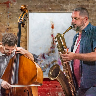 July 18, 2024 - An extraordinary quartet organized by journeyman saxophonist Dave Rempis performed two exciting sets of freeform jazz at the Fulton Street Collective, FSC, in Chicago. Dave Rempis soprano/alto/bari saxophones, Jakob Heinemann bass, Jeb Bishop trombone, and Jeremy Cunningham drums & cymbals. Visual artist Lewis Achenbach created an original drawing in response to the music.