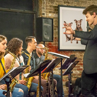 11/14/19 - The Heisenberg Uncertainty Players performed Led Zeppelin's 1973 album, "Houses of the Holy" at Chris Anderson's Jazz Record Art Collective, JRAC, in Chicago. John Dorhauer - director, arranger, Natalie Lande - soprano/alto sax, clarinet, Kelley Dorhauer - alto sax, Dan Burke - tenor sax, Matt Beck - tenor sax, clarinet, flute James Baum - baritone sax, bass clarinet, Michael Nearpass - trombone, Josh Torrey - trombone, Andrew Meyer - trombone, Dan DiCesare - bass trombone, Adam Roebuck - trumpet, Jon Rarick - trumpet, Bennett Heinz - trumpet, Emily Kuhn - trumpet, Chris Parsons - guitar, Stu Seale - piano, Dan Parker - bass, and Jon Wenzel - drums. Artwork was created in response to the music by Adam Dorhauer.